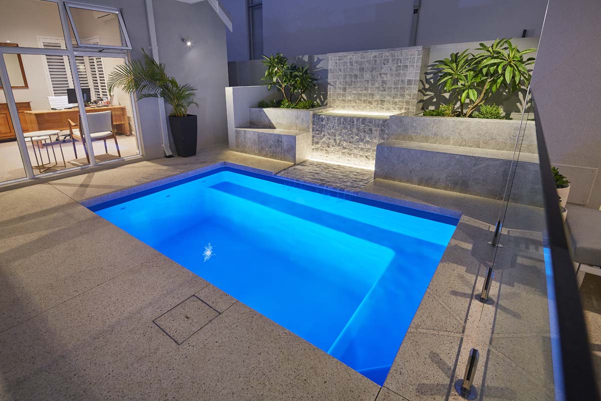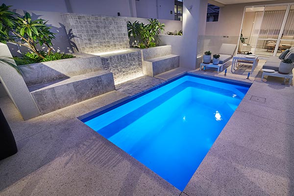 Designed to fit snugly into small areas where space is limited, or for those seeking a compact plunge pool for relaxation, the Billabong Plunge Slimline is the ultimate solution. With its dual entry steps, this pool can be positioned in virtually any space, while the lengthwise bench seating area extends across the pool and entry, providing a convenient spot for incorporating an open spa jet option, perfectly suited to this pool.