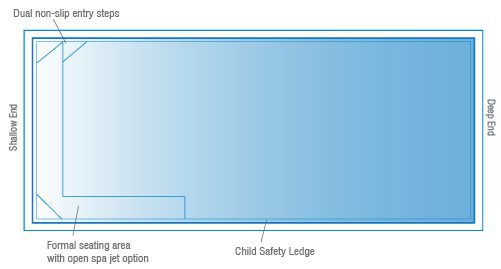 The Billabong swimming pool range comes in four lengths and widths with options to suit all requirements. From a supersized 10.5-metre to a slimline 4.2-metre, this swimming pool design is perfect for today’s busy lifestyle.
