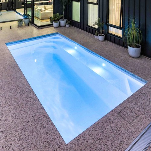 Compact yet extremely versatile, sleek and modern, the Corsa is the newest addition to the already extensive Barrier Reef Pools fibreglass pool range. The Corsa is perfect for narrow backyards or restricted areas, the series features a full-length bench with dual access points, whilst still providing plenty of swimming space for the family. The dual entry and exit points allow for versatile positioning to perfectly compliment any backyard design. The Corsa swimming pool series compromises of four sizes and a width of 2.2m, with higher density living on the increase and small private exteriors the Corsa Range has been specifically designed to be utilised in such areas. The Corsa range will meet the needs of the entire family.