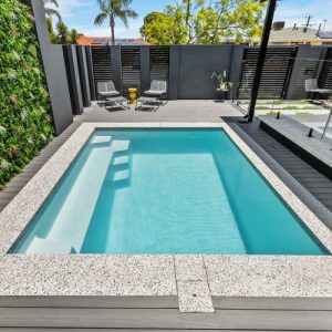 Sleek Square Internal Corners: The pool’s square internal corners add a touch of modernity and sophistication. With 90-degree paving, you can achieve a clean and stylish look that seamlessly integrates with your outdoor aesthetic.