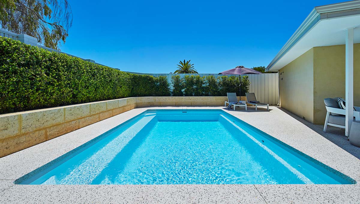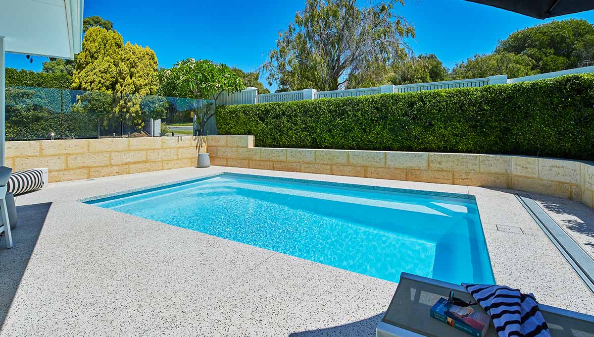 This Brampton 7.2m x 4.4m in Alpine White Shimmer was recently installed at a home in Wembley Downs. Sleek, modern and practical, the Brampton is designed for both relaxation and active use. Its clean lines and light-reflective finish make it a stunning focal point, while the size offers plenty of room for the family to swim, unwind and enjoy the outdoors—all from the comfort of home.