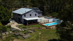 Our Brampton pool in our classic Alpine White Shimmer is the perfect colour for this Jimboomba home. Perfectly contrasted against the earth tones of the backyard, this massive 8.2m x 4.4m is ideal for splashing around and for cooling off. A bench seat running across the long side of the pool allows you to kick back and relax. We’re glad we were able to bring another local Jimboomba family’s dream of owning a fibreglass pool to life!