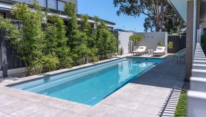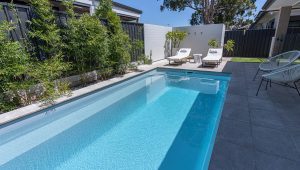 The Brampton Lap Pool has bench seating running the full length of the pool which helps on its close proximity to houses and structures close by. The sleek design provides an unobstructed swim area that creates a spacious feel and the perfect family pool.