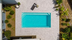 Its sleek and minimalist design incorporates dual access points, ensuring effortless placement in various outdoor spaces. Moreover, the pool boasts a bench seat that spans the entire length, providing a practical solution when considering its proximity to the house or nearby structures. This versatile addition further enhances the pool’s allure and functionality.