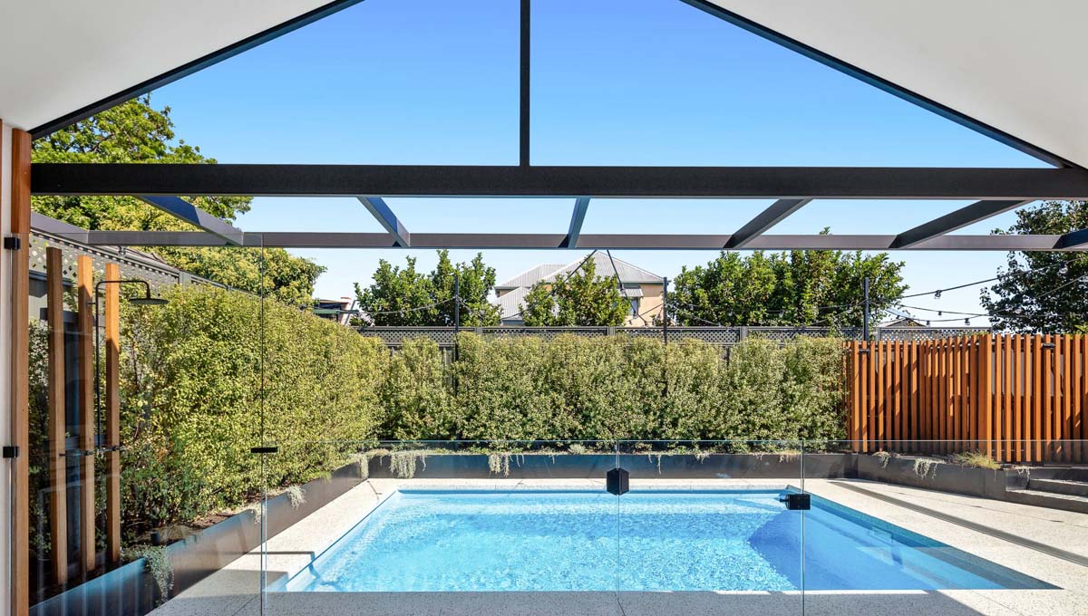 The Brampton 6.2m x 4.4m in Sky Blue Shimmer boasts strong geometrical features that beautifully complement both contemporary and traditional landscapes.