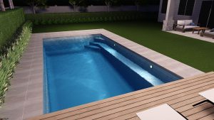 The strong geometrical features of the Brampton Slimline are designed to compliment contemporary and traditional landscapes. Bold and sophisticated, the Brampton Slimline boasts dual entry and exit points making it extremely versatile on its position in most settings. The Brampton Slimline has bench seating running the full length of the pool which helps on its close proximity to houses and structures close by. The sleek design provides an unobstructed swim area that creates a spacious feel and the perfect family pool.