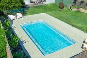 The strong geometrical features of the Brampton Slimline are designed to compliment contemporary and traditional landscapes. Bold and sophisticated, the Brampton Slimline boasts dual entry and exit points making it extremely versatile on its position in most settings. The Brampton Slimline has bench seating running the full length of the pool which helps on its close proximity to houses and structures close by. The sleek design provides an unobstructed swim area that creates a spacious feel and the perfect family pool.