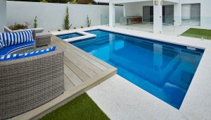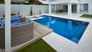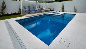 Check out one of our stunning installations of the Brooklyn 7.6m pool in the gorgeous Royal Jade Shimmer finish! This particular installation was completed in Mount Pleasant for another delighted family. The pool’s elegant design and shimmering finish have truly transformed their backyard into a serene retreat. We’re thrilled to see the joy it has brought to their home!