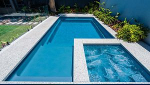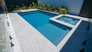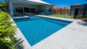 This expansive 8.6m x 4.4m Brooklyn pool in Hampton Grey Shimmer makes a bold statement in this Wembley backyard. With its clean lines and generous proportions, it’s perfect for swimming, entertaining, and enjoying the outdoors in style. The Hampton Grey Shimmer finish gives the water a sleek, silvery-blue tone that enhances the modern aesthetic while blending beautifully with the surrounding landscape. A stunning centrepiece, this pool is ideal for contemporary family living in Wembley.