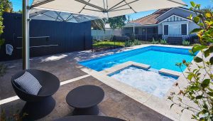 Check out one of our stunning installations of the Brooklyn 9.6m pool in the gorgeous Sky Blue Shimmer finish! This particular installation was completed in Inglewood for another delighted family. The pool’s elegant design and shimmering finish have truly transformed their backyard into a serene retreat. We’re thrilled to see the joy it has brought to their home!