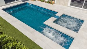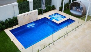 A stunning one piece configuration that has been designed with the whole family in mind. The entry point steps down into a versatile platform that is ideal as a kids play area or water lounge to sit and relax in. Designed with a spillway the pool and spa can run simultaneously eliminating any additional power costs, alternatively they can be run independently. The generous swimming area has been designed to be totally un-obstructed, which is ideal for swimming laps and active families. There is no other pool that can offer all of these features. With its square lines and designer looks we are sure your whole family will love it.