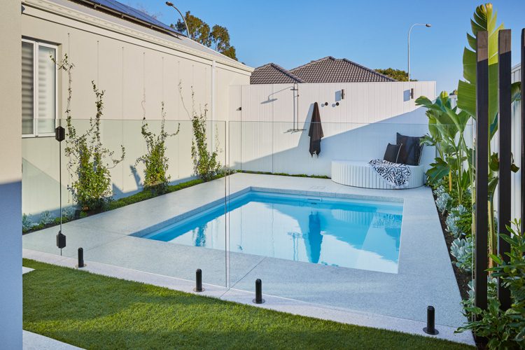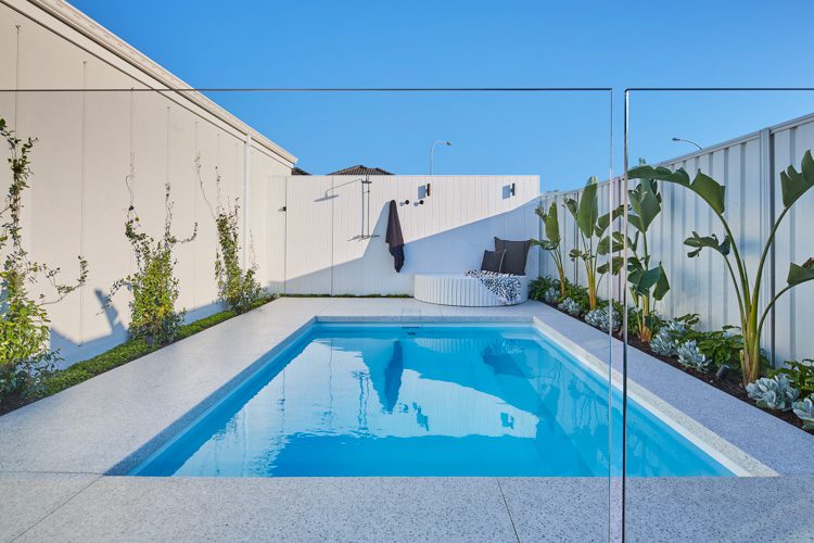 View our Hamilton 5.5m x 3.6m Polo White Sparkle pool installation gallery from Success, showcasing the elegant design and stunning features of our premium pools. Explore the beauty and craftsmanship that make our installations stand out.