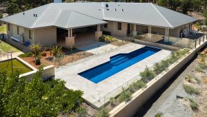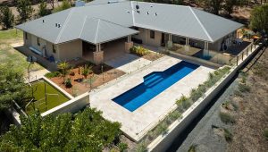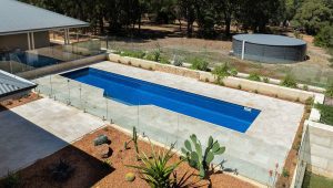This impressive 12.2m x 3.45m lap pool in Royal Jade Shimmer brings elegance and functionality to this Chittering property. Designed for serious swimming and everyday enjoyment, its long, streamlined shape is ideal for fitness and relaxation alike. The Royal Jade Shimmer finish creates a rich, jewel-toned water colour that beautifully reflects the natural surrounds, adding a touch of luxury to the outdoor space. A perfect blend of form and function, this lap pool suits the tranquil lifestyle of Chittering.