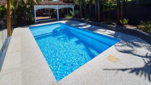 Introducing the Sunseeker Slimline from Barrier Reef Pools’ extensive pool range. This pool showcases our stunning Sky Blue Shimmer colour. Its simplistic and clean design offers a perfect blend of functionality and style, featuring a full-length step for easy access and a spacious splash deck ideal for relaxing with family and friends or creating a fun-filled kids play area. With recessed steps, the Sunseeker Series provides an uninterrupted swimming experience so you can spend more time enjoying the pool and having a splash!