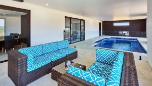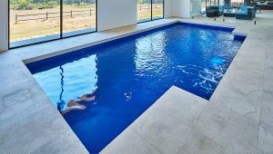 This 9.5m x 4.4m Venice pool in Ocean Shimmer transforms this Wanerie property into a private oasis. With its expansive size and elegant curves, it’s perfect for both swimming and entertaining. The Ocean Shimmer finish gives the water a deep, vibrant blue tone that mirrors the beauty of the coast, creating a serene and luxurious feel. Designed for relaxed outdoor living, this pool offers a perfect balance of style, comfort, and functionality in a natural setting.